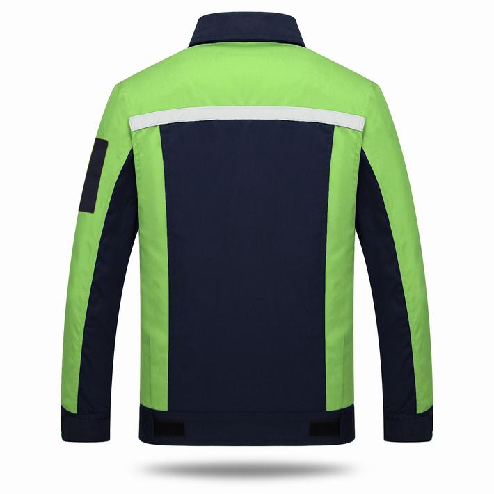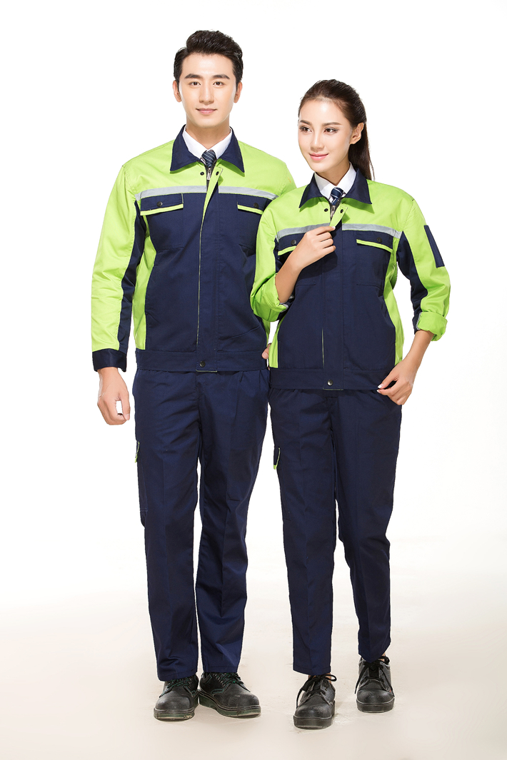 淮南反光條工作服定做款式藏青色拼綠色工作服長(zhǎng)袖套裝GZ-8016