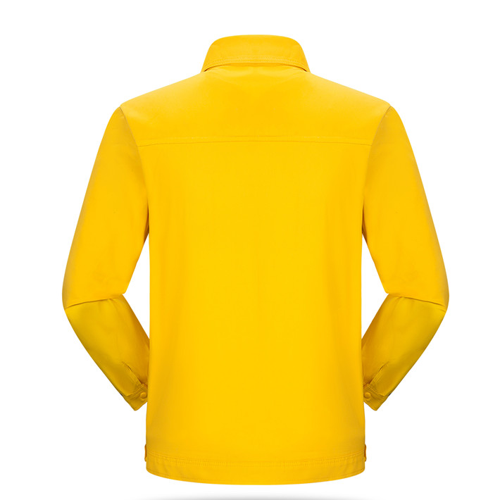 壽縣工作服定做廠家定制工服款式全棉黃色拼灰色套裝GZ-8018
