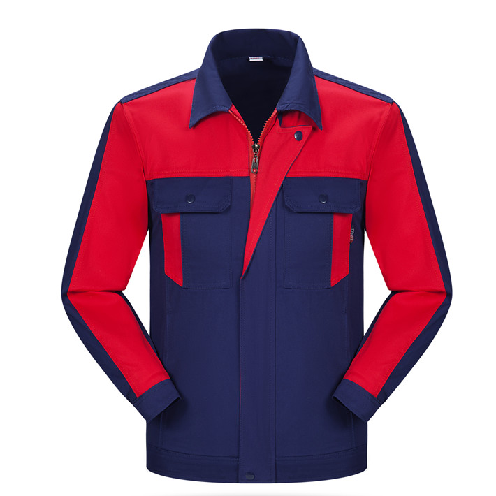 全棉紗卡藏青色拼紅色拉鏈式工作服長袖套裝GZ-8019