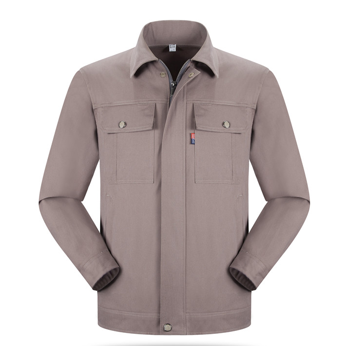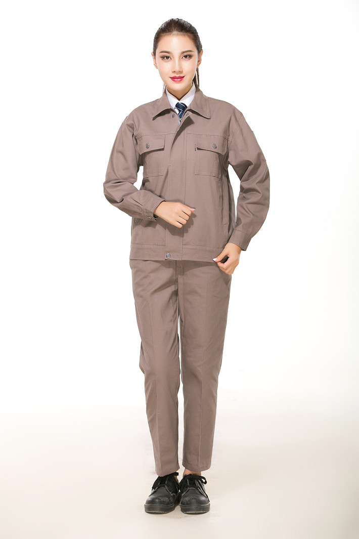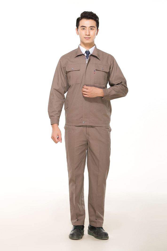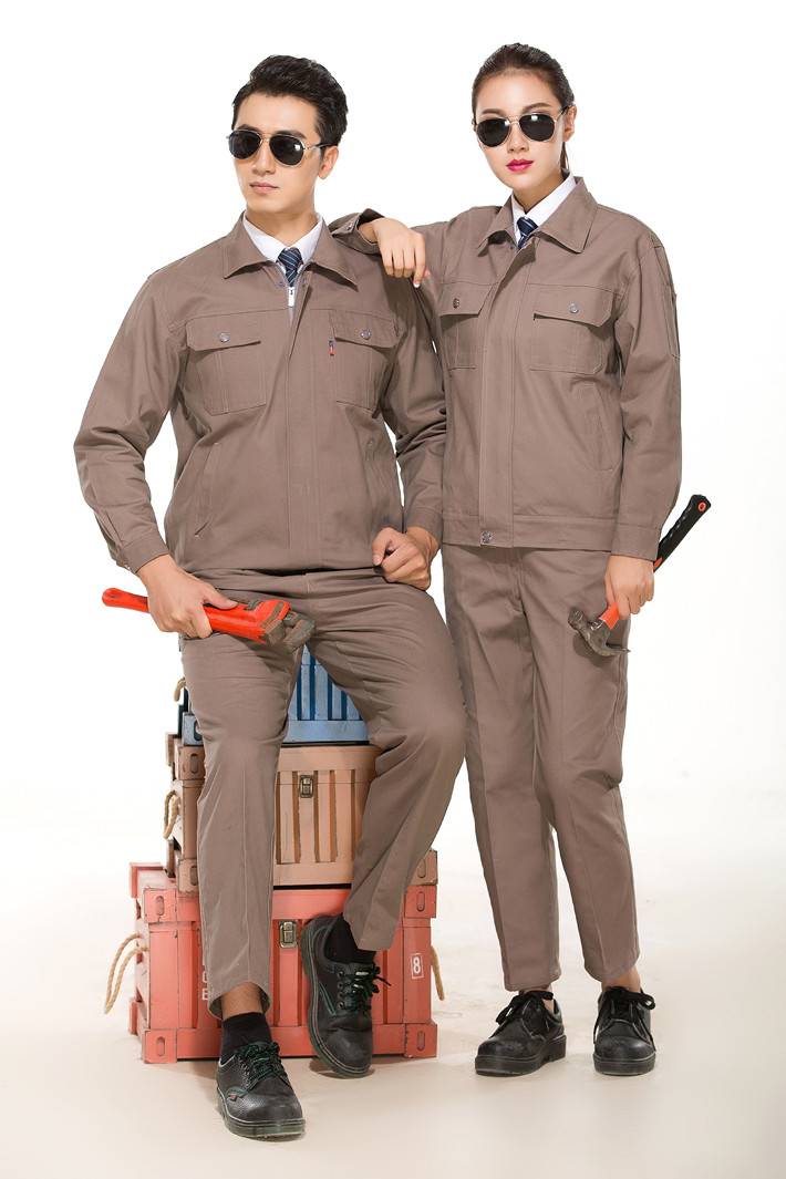 全棉紗卡卡其色拉鏈式工作服長袖套裝GZ-8022