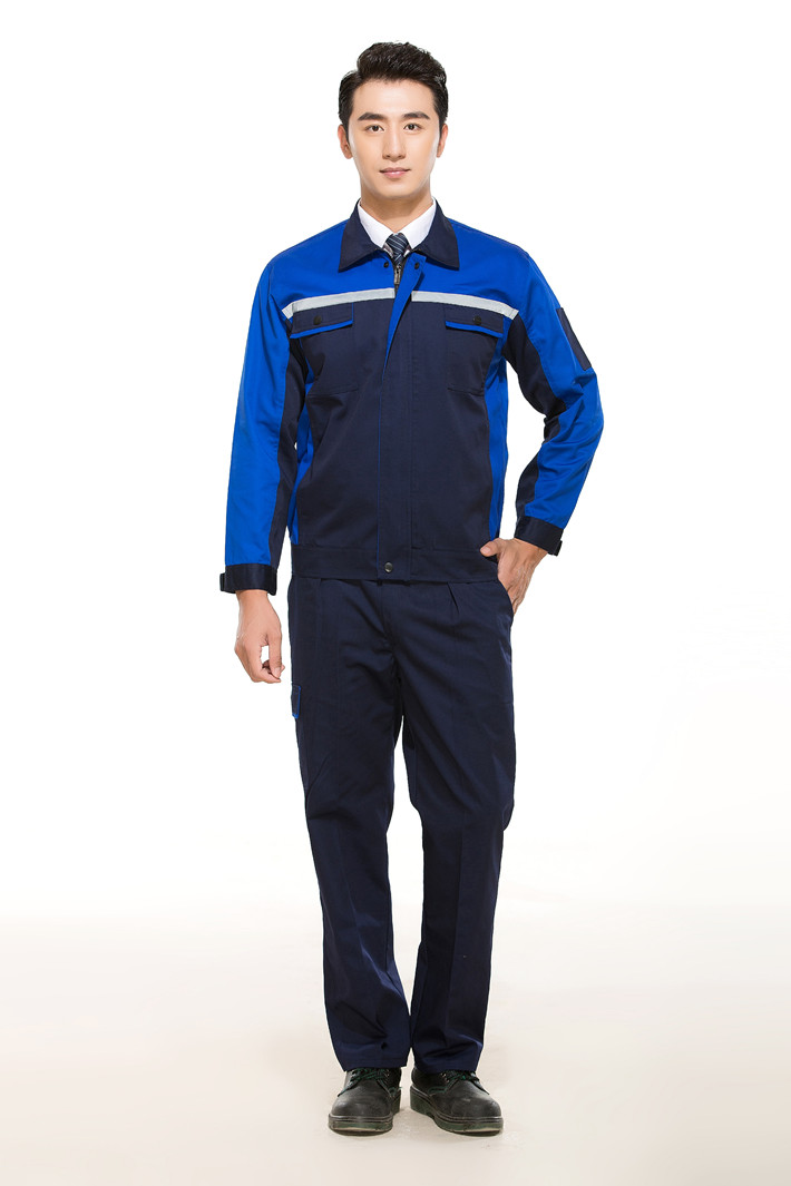 滌棉反光條藏青色拼藍色馬鞍山工作服GZ8011