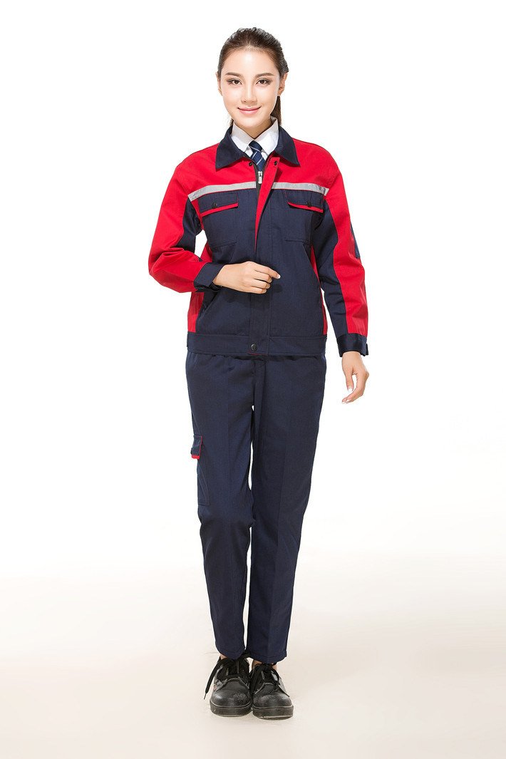 滌棉反光條藏青色拼紅色馬鞍山工作服GZ8012