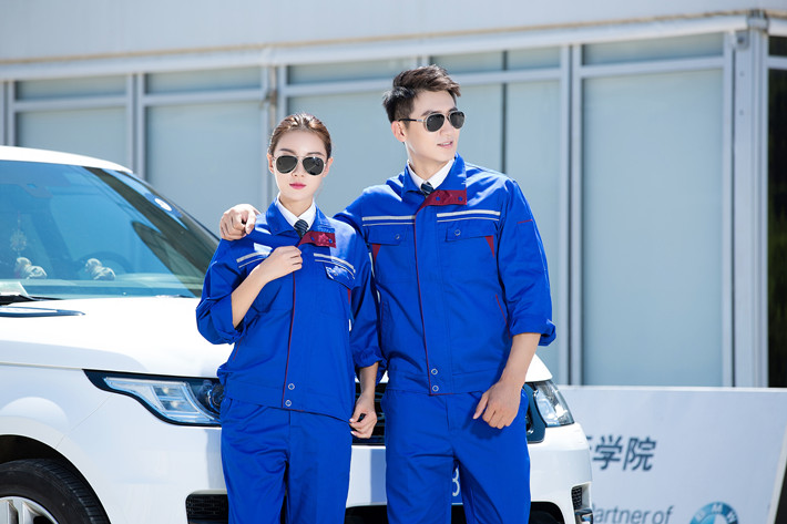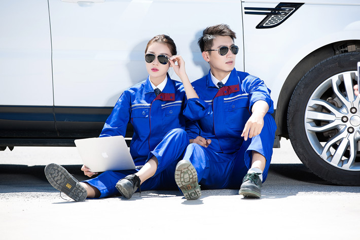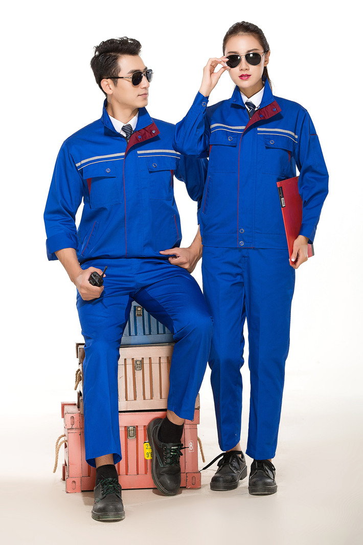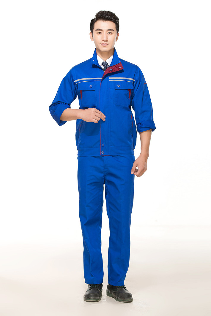 滌棉寶藍色立領拼色拉鏈式反光條工作服長袖套裝GZ-8025