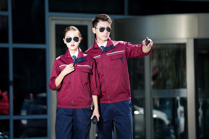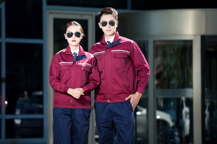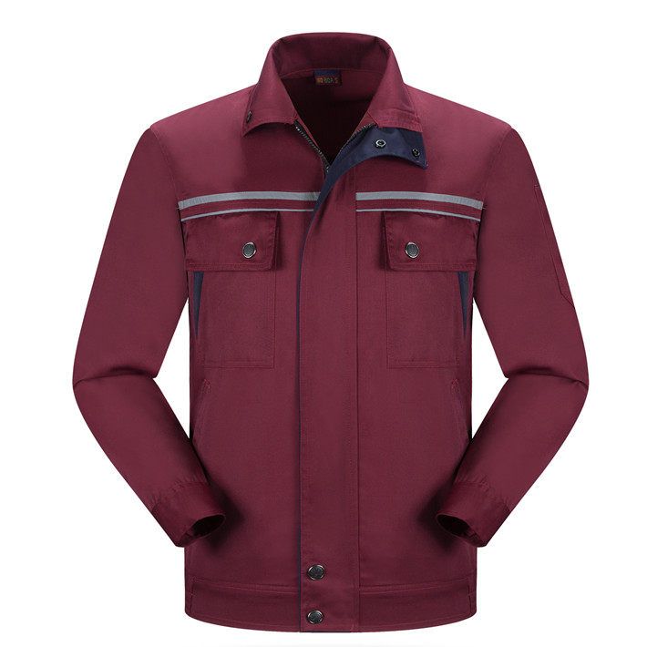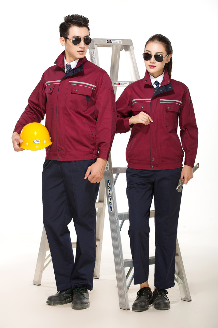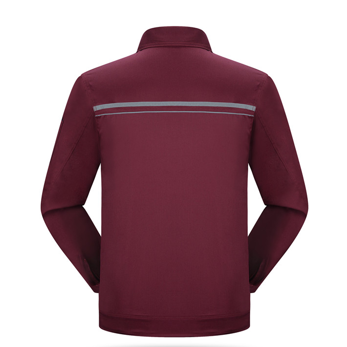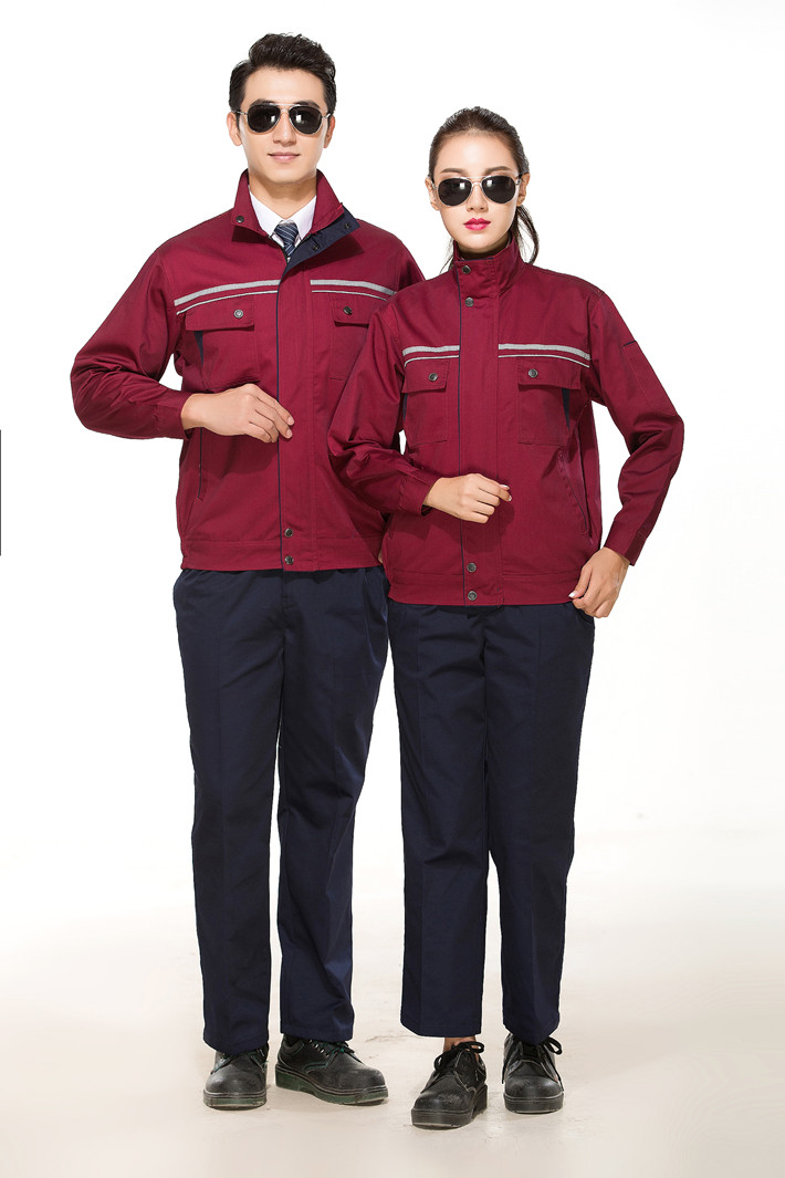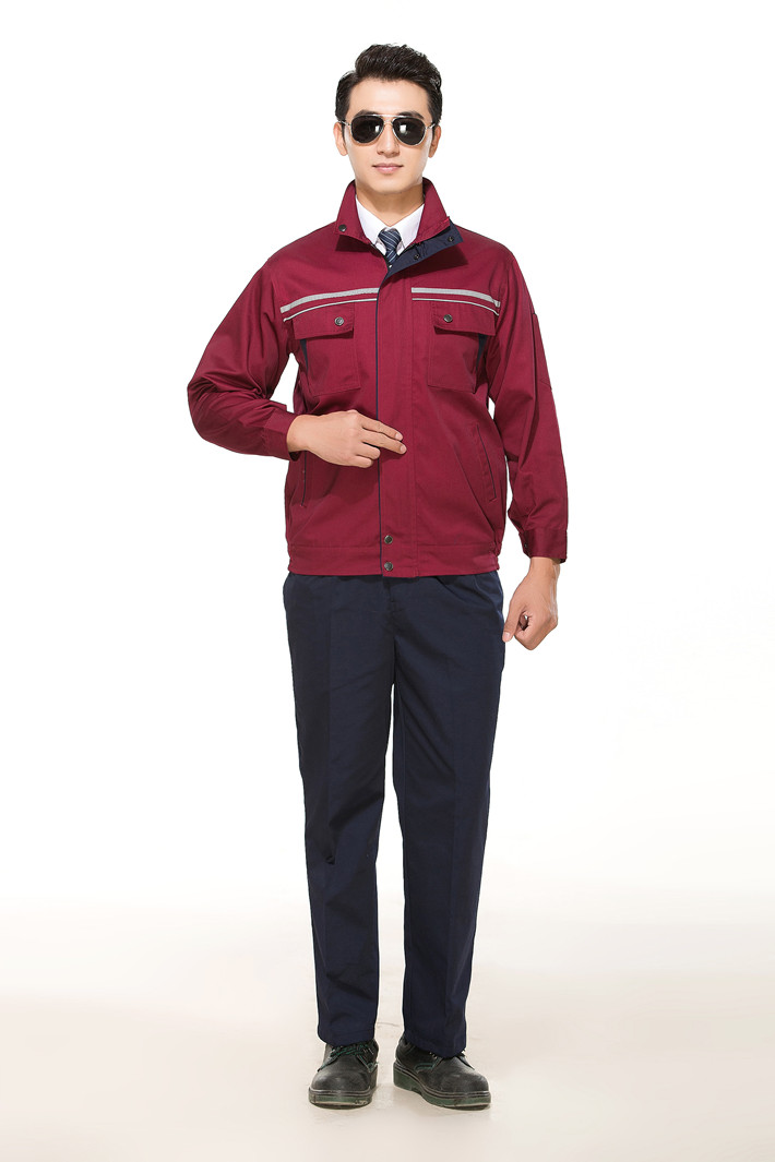 滌棉棗紅色立領(lǐng)拼色拉鏈式反光條工作服長袖套裝GZ-8028