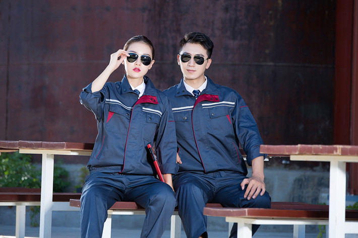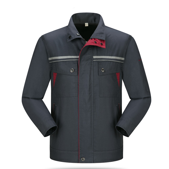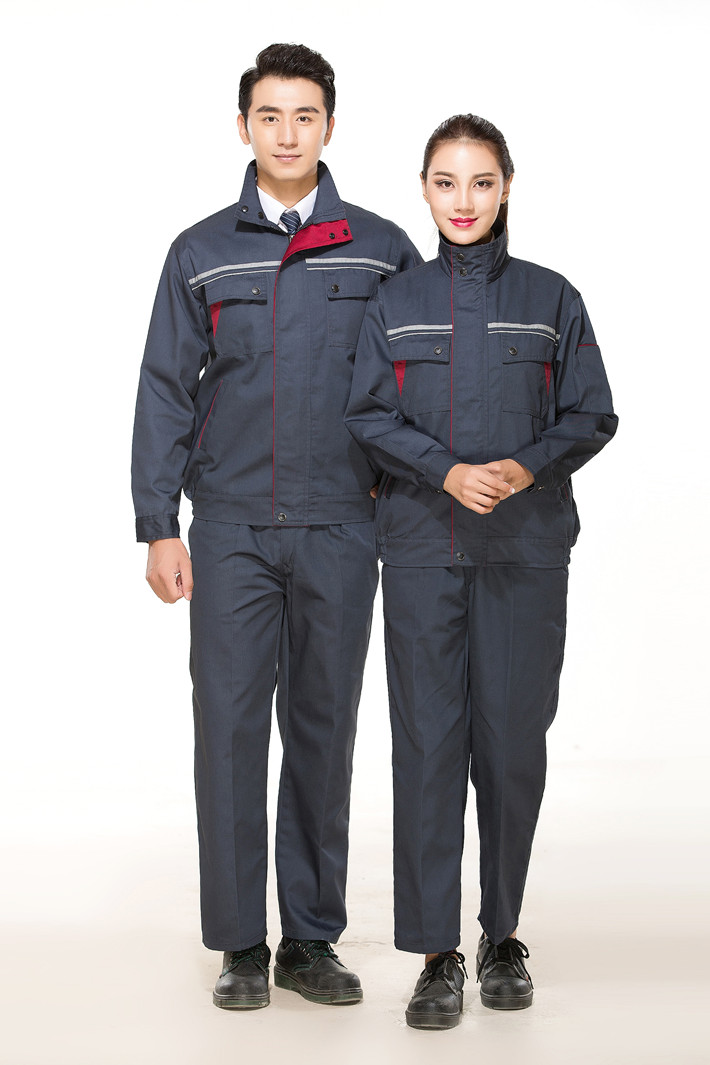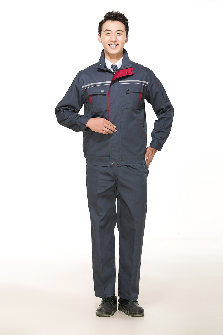滌棉深灰色立領拼色拉鏈式反光條工作服長袖套裝GZ-8029