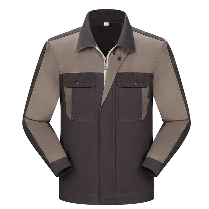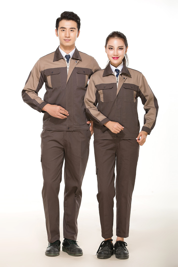 全棉紗卡卡其色拼灰色拉鏈式工作服長袖套裝GZ-QM8023