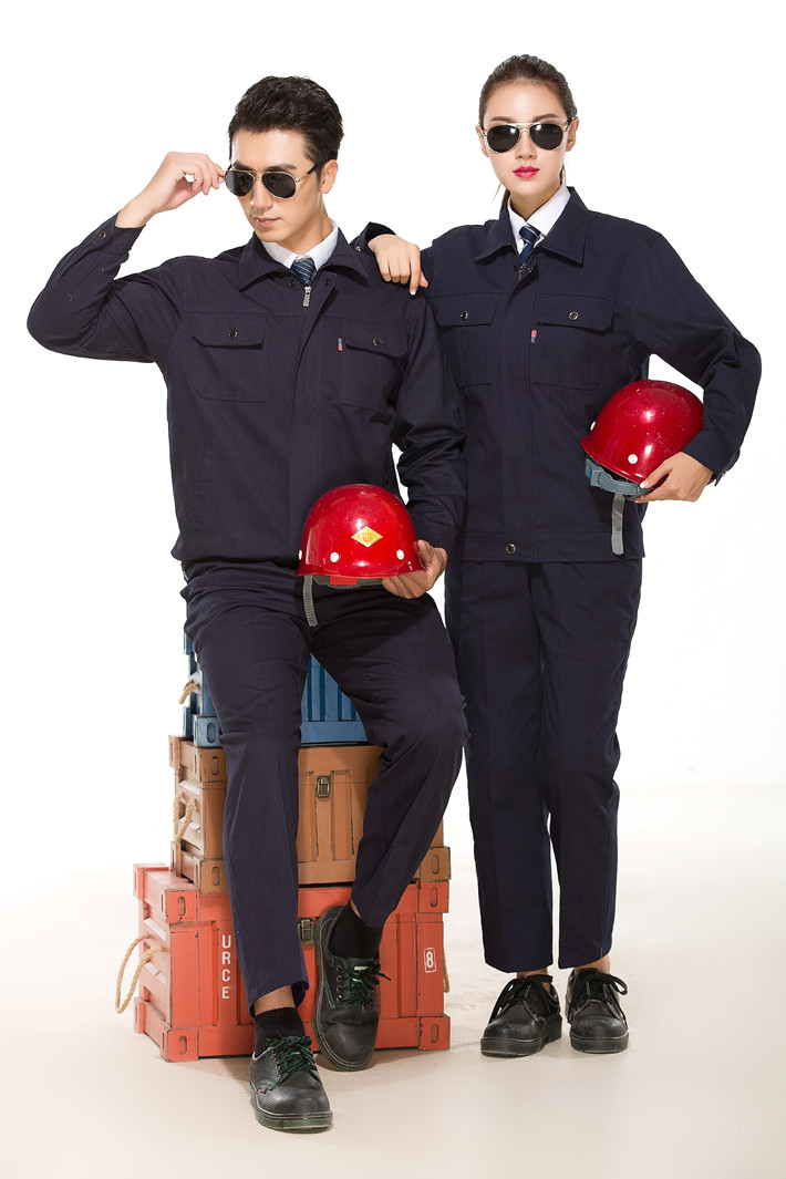 全棉紗卡藏青色拉鏈式工作服長袖套裝GZ-QM8021