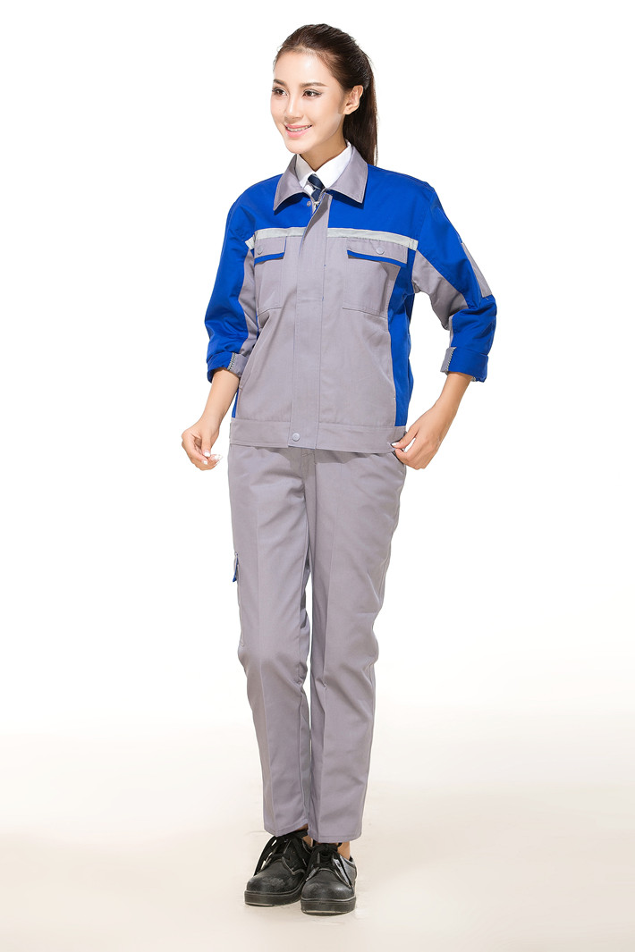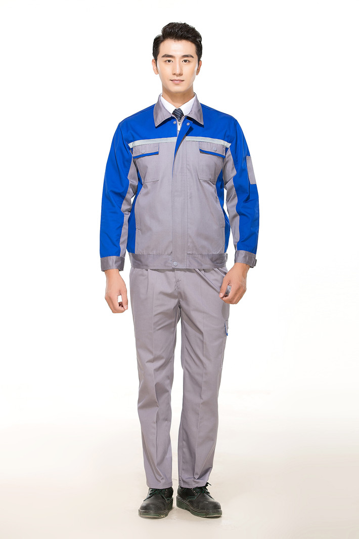 滌棉灰色拼藍(lán)色反光條工作服套裝GZ-DM8013
