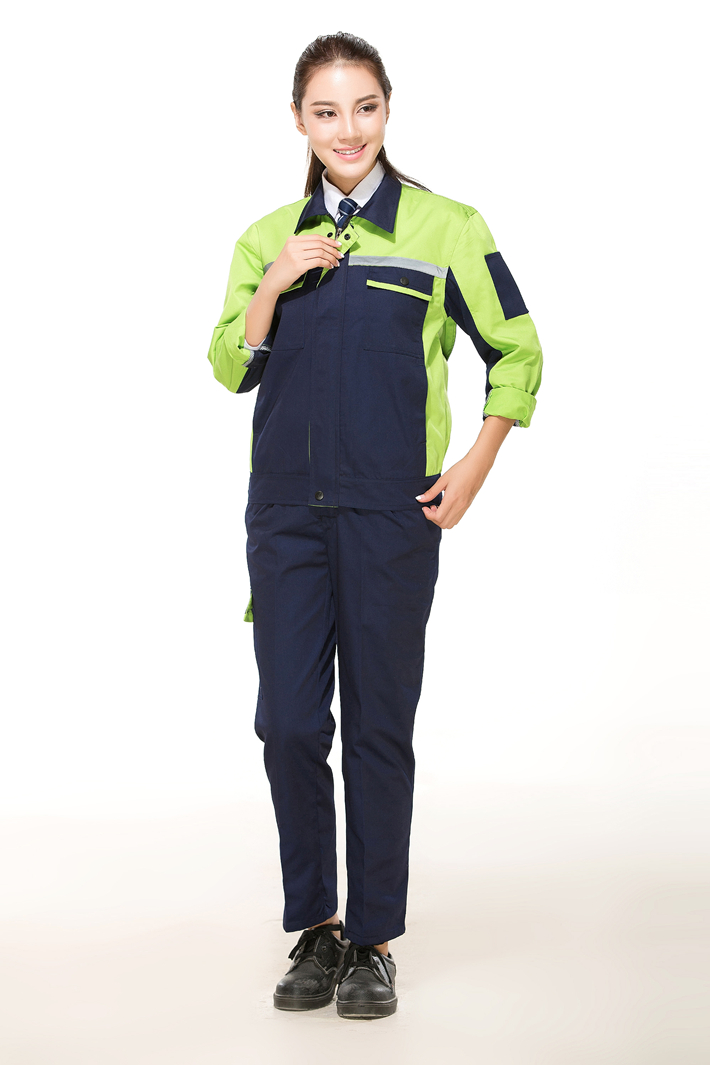 滌棉藏青色拼綠色反光條工作服長袖套裝GZ-FGT8016