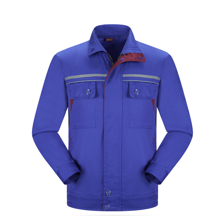 滌棉寶藍色立領拼色拉鏈式反光條工作服長袖套裝GZ-FGT8025