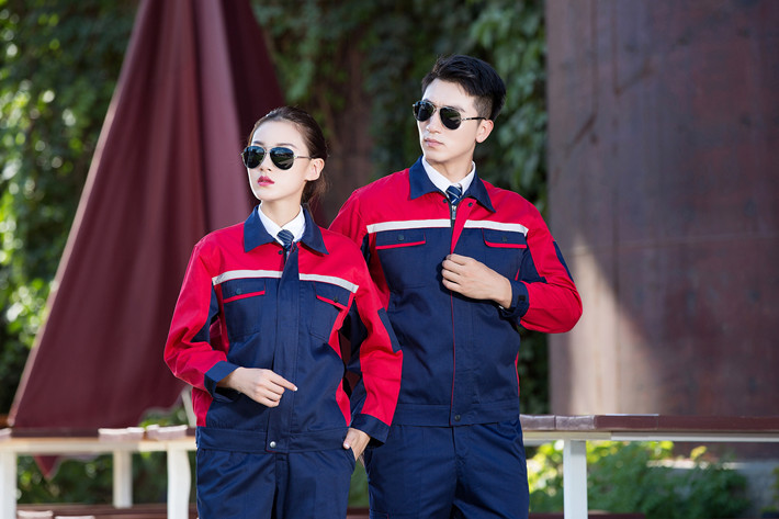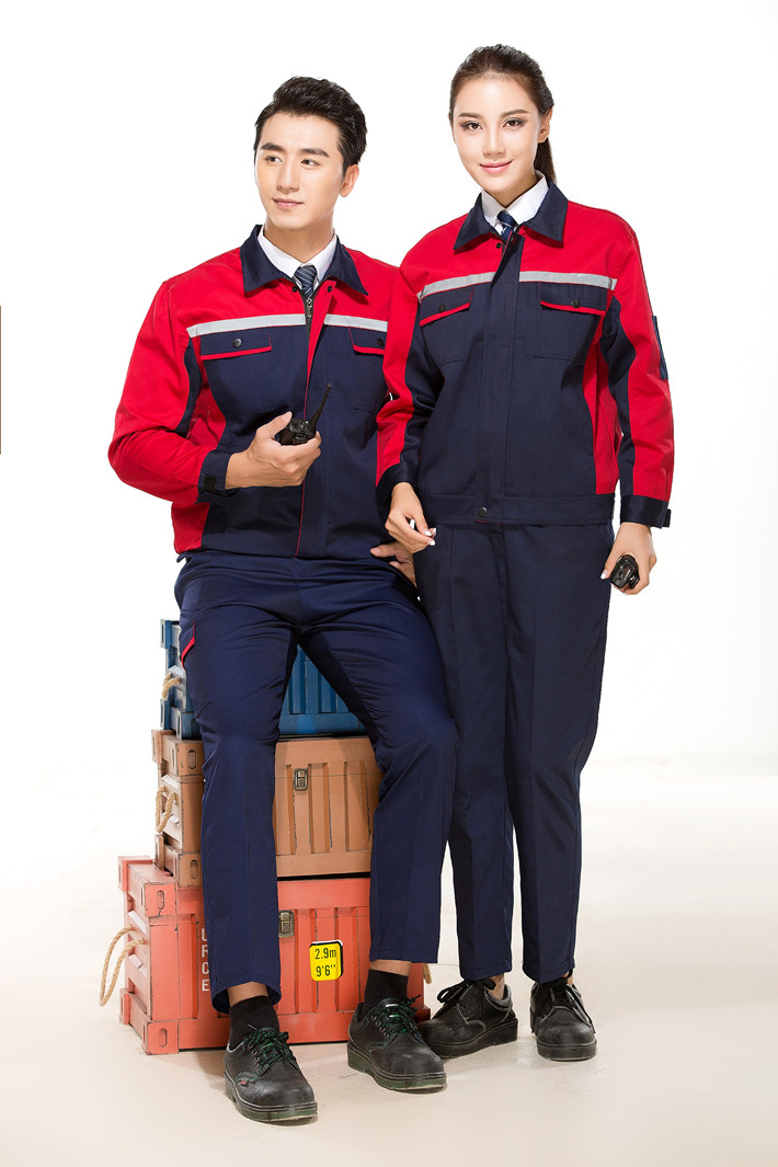 合肥工作服廠家,定做合肥工作服款式藏青色色拼紅色GZ-8012