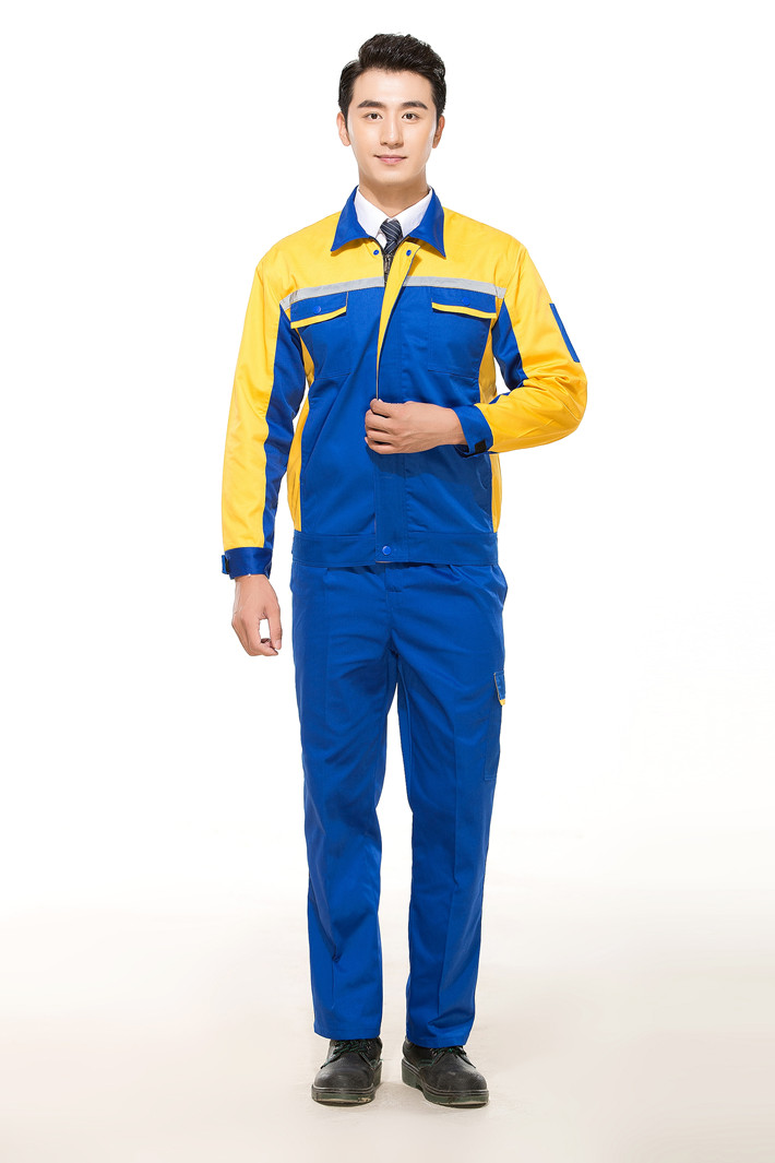 合肥防靜電工作服定制款式藍色拼黃色GZ-8014